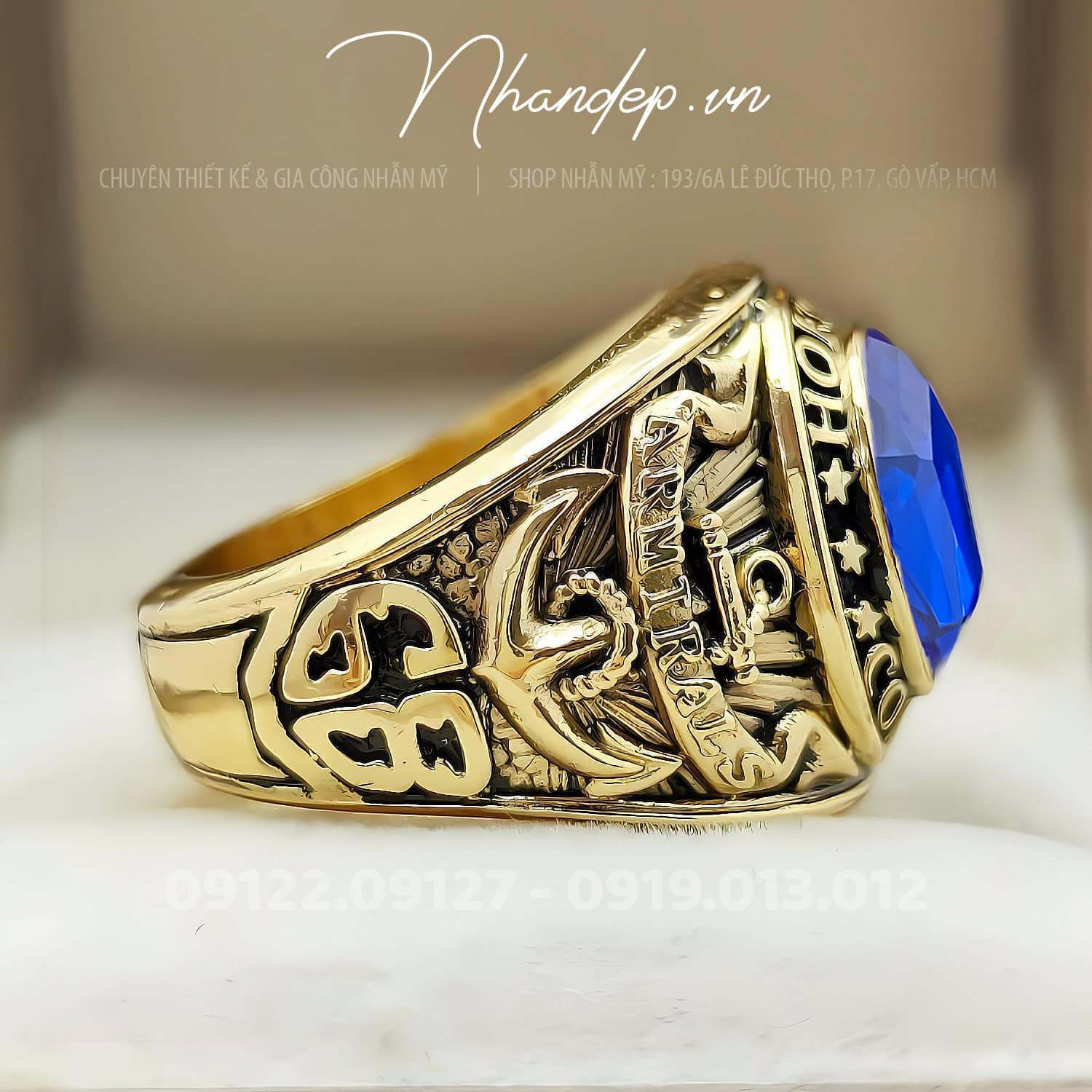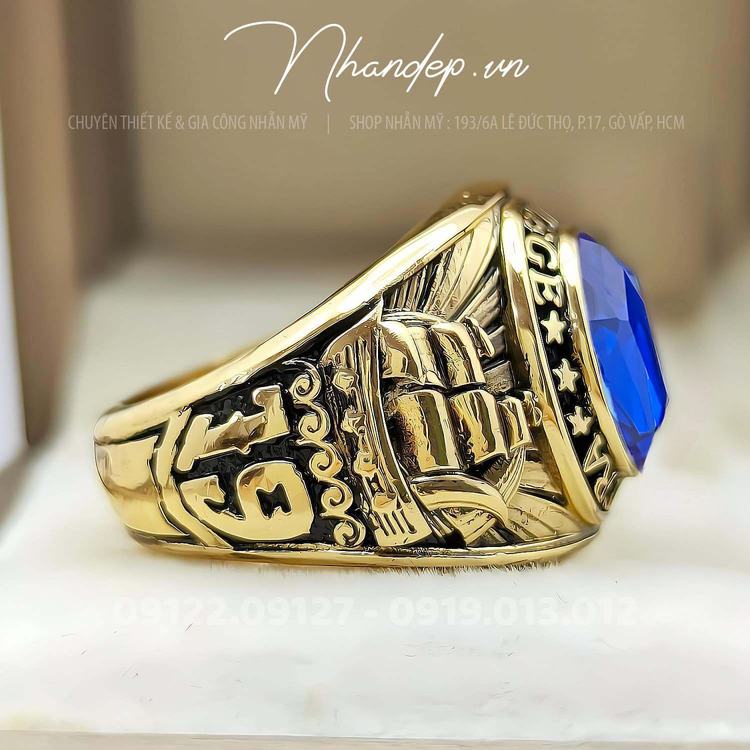 - Nhẫn được đúc từ hợp kim màu vàng độc quyền do shop tự phát triển. Không shop nào khác có, chuyên dùng để đúc nhẫn Mỹ. Cam kết nhẫn không bạc màu, sắc nét, nhìn như vàng thật, đúc được những mẫu nhẫn Mỹ cực khó.