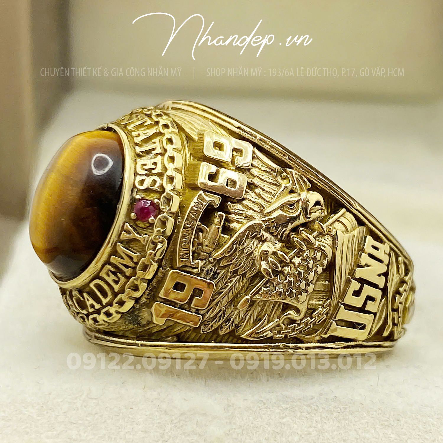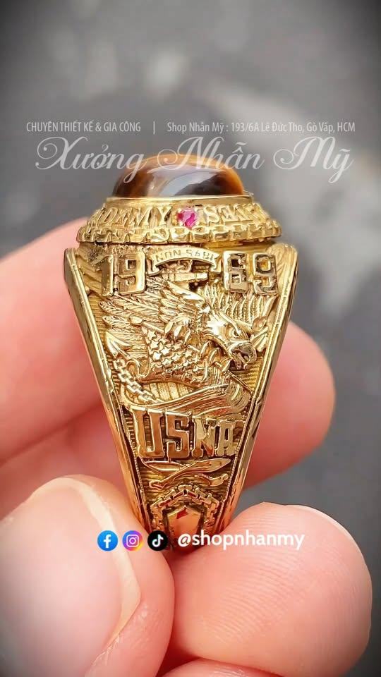 - Nhẫn được đúc từ hợp kim màu vàng độc quyền do shop tự phát triển. Không shop nào khác có, chuyên dùng để đúc nhẫn Mỹ. Cam kết nhẫn không bạc màu, sắc nét, nhìn như vàng thật, đúc được những mẫu nhẫn Mỹ cực khó.