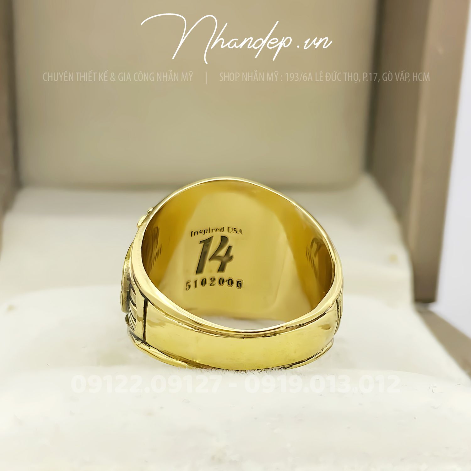 - Nhẫn được đúc từ hợp kim màu vàng độc quyền do shop tự phát triển. Không shop nào khác có, chuyên dùng để đúc nhẫn Mỹ. Cam kết nhẫn không bạc màu, sắc nét, nhìn như vàng thật, đúc được những mẫu nhẫn Mỹ cực khó.