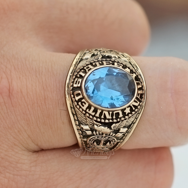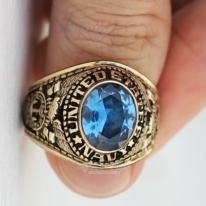Nhẫn Đồng Hải Quân Mỹ đá Xanh Dương Vác Đẹp Như Vàng 10K1.000.000XEM THÊM & ĐẶT HÀNGNhẫn Mỹ Hải Quân USA thường được chế tác để trao cho các Sỹ Quan hoặc Chuẩn Úy Hải Quân Mỹ. Bởi vì lẻ đó mà nhẫn rất đẹp và hiếm. Dựa vào cảm hứng chiếc nhẫn Mỹ Hải quân United States Navy, hãng Aritk đã phục dựng lại bằng chất liệu đồng hội vàng thay thế cho vàng 10K, bằng công nghệ 3D Resin cao cấp và công nghệ Ceramic Hybrid Premium 8H giúp sản phẩm đạt được độ hoàn thiện đến mức RẤT TINH XẢO. Ngoài ra, với chất liệu mới (đồng hội vàng) cho ra màu sắc vàng nhạt và chân thật đến mức thợ kim hoàn cầm trên tay cũng khó nhận biết là Vàng thật hay là đồng hội. Nhẫn có form vừa tay, họa tiết sắc nét, form chuẩn nhẫn Mỹ, phù hợp với người hoài cổ, thích sưu tầm.