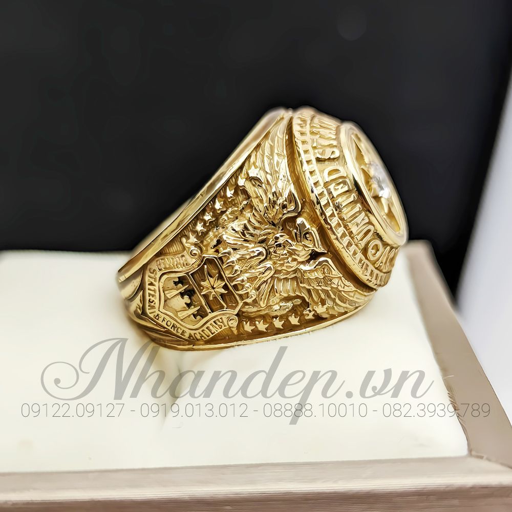 - Nhẫn được đúc từ hợp kim màu vàng độc quyền do shop tự phát triển. Không shop nào khác có, chuyên dùng để đúc nhẫn Mỹ. Cam kết nhẫn không bạc màu, sắc nét, nhìn như vàng thật, đúc được những mẫu nhẫn Mỹ cực khó.
