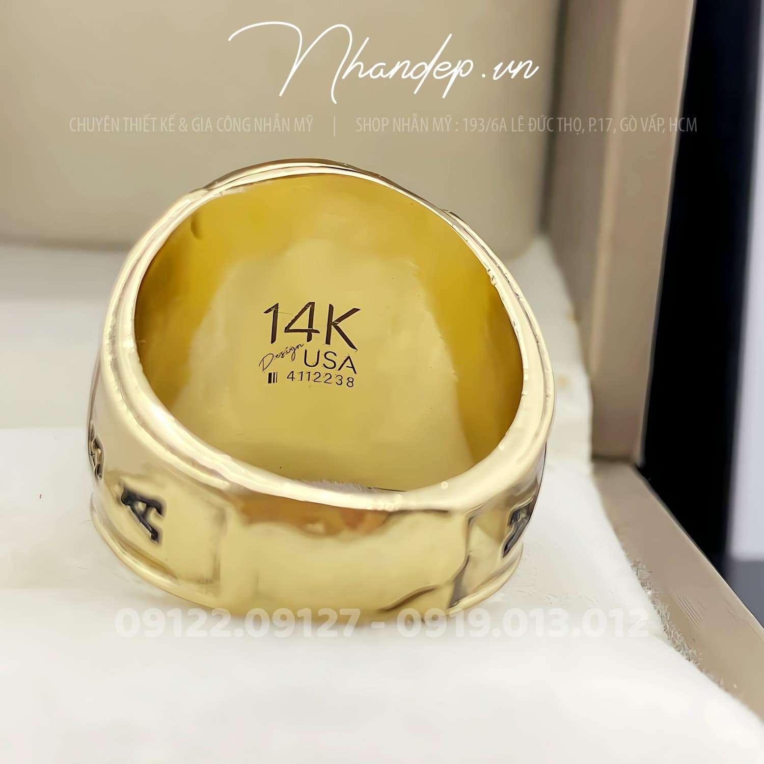 - Nhẫn được đúc từ hợp kim màu vàng độc quyền do shop tự phát triển. Không shop nào khác có, chuyên dùng để đúc nhẫn Mỹ. Cam kết nhẫn không bạc màu, sắc nét, nhìn như vàng thật, đúc được những mẫu nhẫn Mỹ cực khó.