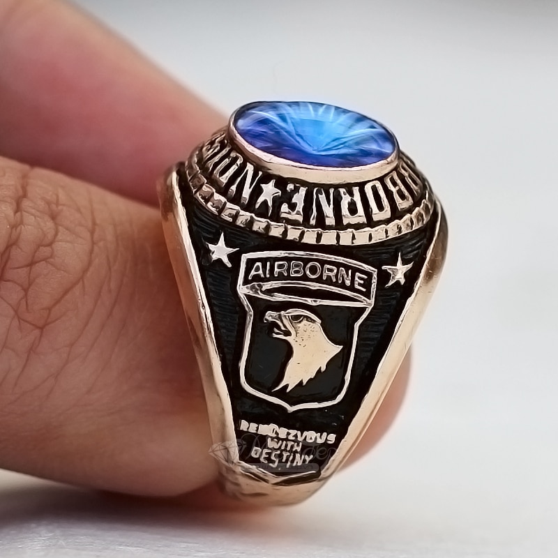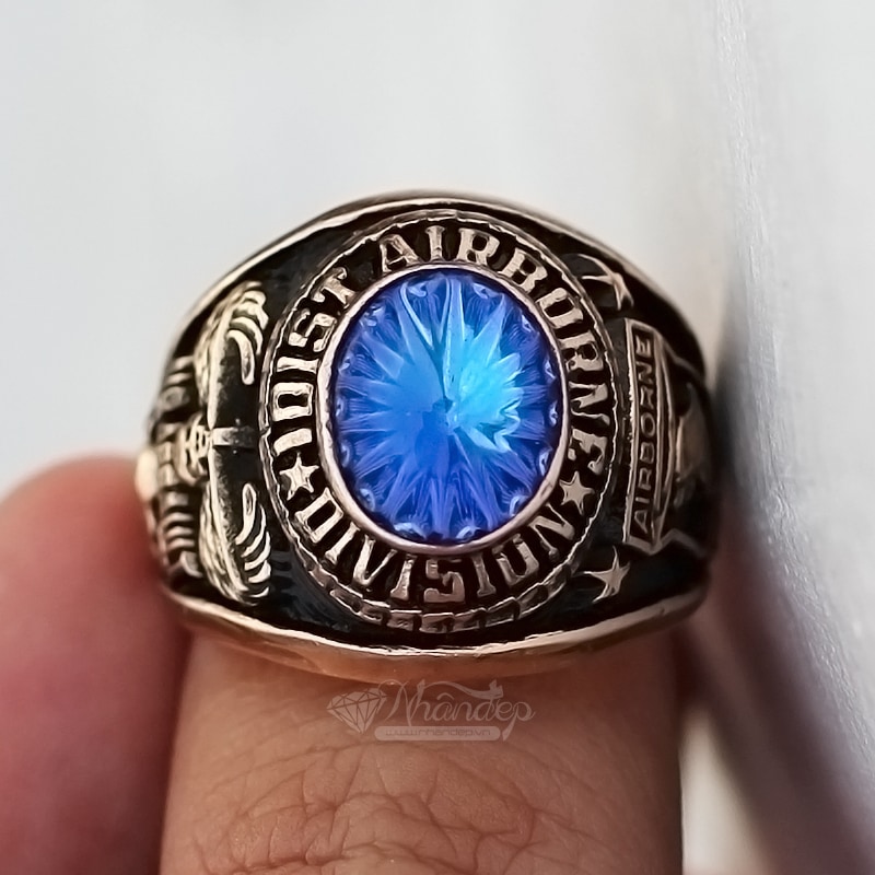 Nhẫn Mỹ Airborne Đá Xanh Dương Tia – Lính Dù Mỹ Sư Đoàn 101 – Đồng hội vàng800.000XEM THÊM & ĐẶT HÀNGBinh chủng sư đoàn nhảy dù 101 - Sư đoàn Kỵ binh số 1 (Hoa Kỳ) được thành lập năm 1918 tại Camp Shelby, Mississippi. Trong thời Chiến tranh Việt Nam, Sư đoàn 101 đã sử dụng trực thăng làm phương tiện chuyển vận binh sĩ. Đây là nhẫn được hãng Aritk phục chế theo công nghệ hiện đại nhất từ 1 chiếc nhẫn Mỹ zin bằng vàng 10k. Nhẫn có form vừa tay, sắc nét.