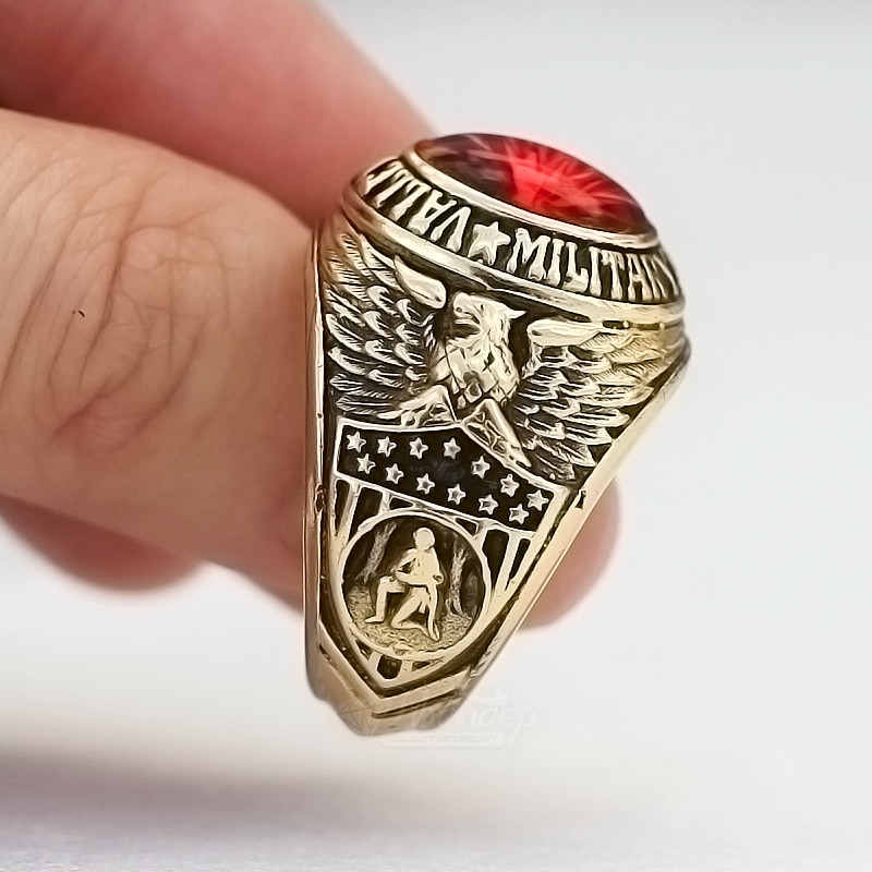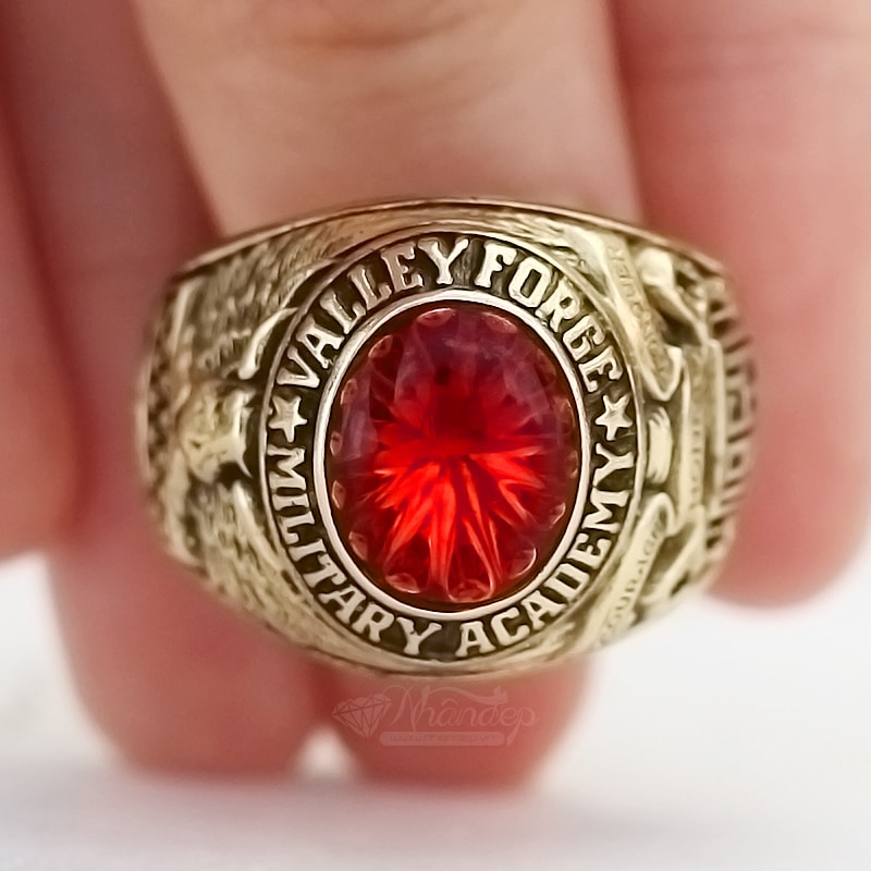 Nhẫn Mỹ Học Viện Quân Đội 1964 Đỏ Tia – Đồng Hội Vàng1.100.000XEM THÊM & ĐẶT HÀNGHọc Viện Quân Đội Valley Forge tọa lạc tại số 1001 Eagle Rd, Wayne, PA 19087, Hoa Kỳ. Với khẩu hiệu : Courage - Honor - Conquer (Dũng cảm - Danh dự - Chinh phục) và 13 ngôi sao tượng trưng cho 13 tiểu bang đầu tiên của Mỹ quốc. Biểu tượng tổng thống George Washington quỳ dưới tuyết cũng là hình ảnh đầy cảm xúc. Học viện quân đội Valley Forge trở nên danh giá và vinh dự đối với tất cả các học viên. Lấy cảm hứng đó, hãng Aritk đã phục dựng lại bằng nhiều chất liệu như Bạc, đồng hội vàng (thay thế cho vàng 10K), bằng công nghệ 3D Resin cao cấp và công nghệ Ceramic Hybrid Premium 8H giúp sản phẩm đạt được độ hoàn thiện đến mức RẤT TINH XẢO. Con số 1964 có thể được thiết kế lại theo năm mà bạn yêu cầu. Nhẫn có form vừa tay, họa tiết rất sắc nét, rỏ đến từng vân chim đại bàng, form chuẩn nhẫn Mỹ, phù hợp với người hoài cổ, thích sưu tầm.