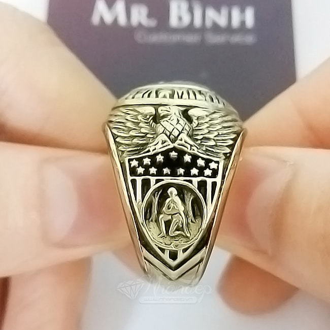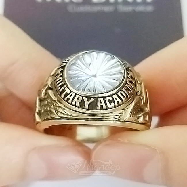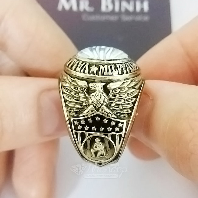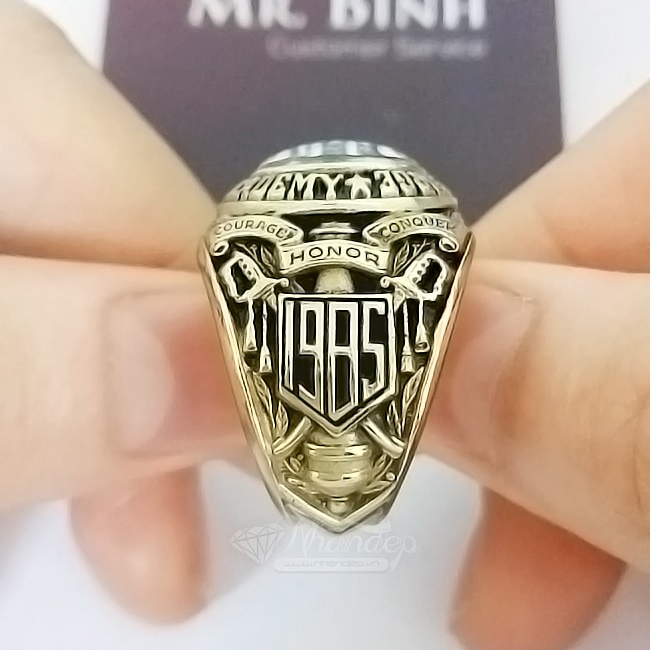 Nhẫn Mỹ Học Viện Quân Đội 1985 (Thay Đổi Năm) – Trắng Tia – Đồng Hội Vàng1.100.000XEM THÊM & ĐẶT HÀNGHọc Viện Quân Đội Valley Forge tọa lạc tại số 1001 Eagle Rd, Wayne, PA 19087, Hoa Kỳ. Với khẩu hiệu : Courage - Honor - Conquer (Dũng cảm - Danh dự - Chinh phục) và 13 ngôi sao tượng trưng cho 13 tiểu bang đầu tiên của Mỹ quốc. Biểu tượng tổng thống George Washington quỳ dưới tuyết cũng là hình ảnh đầy cảm xúc. Học viện quân đội Valley Forge trở nên danh giá và vinh dự đối với tất cả các học viên. Lấy cảm hứng đó, hãng Aritk đã phục dựng lại bằng nhiều chất liệu như Bạc, đồng hội vàng (thay thế cho vàng 10K), bằng công nghệ 3D Resin cao cấp và công nghệ Ceramic Hybrid Premium 8H giúp sản phẩm đạt được độ hoàn thiện đến mức RẤT TINH XẢO. Con số 1985 có thể được thiết kế lại theo năm mà bạn yêu cầu. Nhẫn có form vừa tay, họa tiết rất sắc nét, rỏ đến từng vân chim đại bàng, form chuẩn nhẫn Mỹ, phù hợp với người hoài cổ, thích sưu tầm.