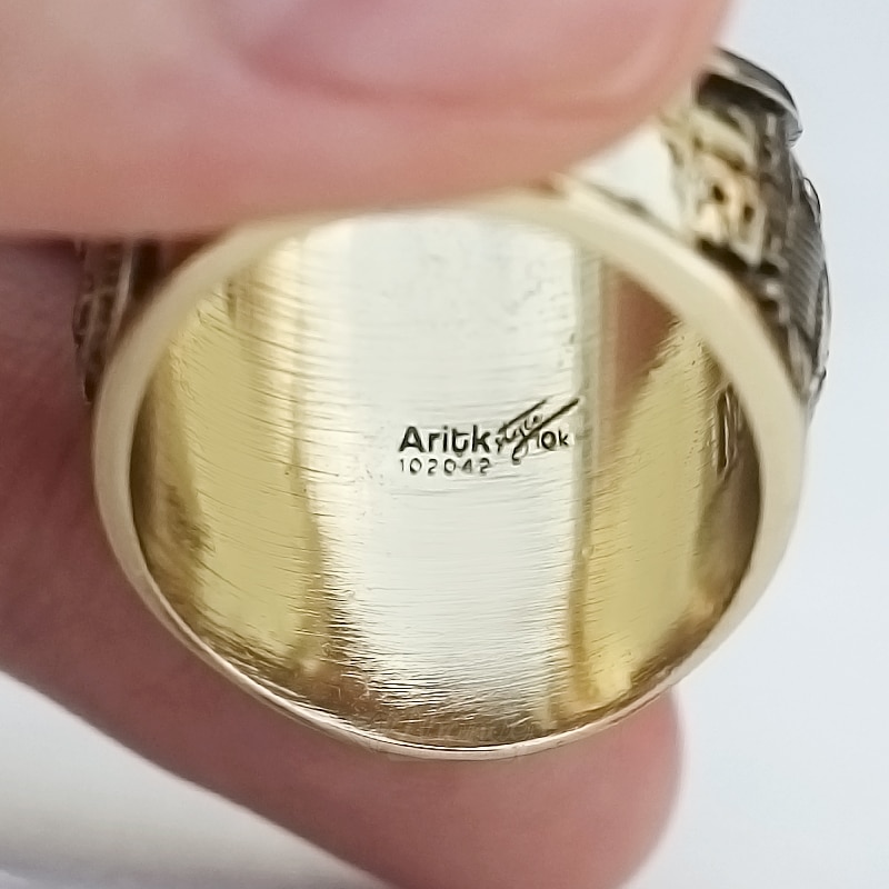 Nhẫn Mỹ đồng hội vàng do Aritk sản xuất có đóng mã số riêng từng chiếc ở trong lòng. Khi mua hàng, bạn có thể check thông tin từ nhà sản xuất bằng cách nhập Mã số này vào website www.aritk.com để biết thông tin bao gồm : Chất liệu, màu đá, size nhẫn, cân nặng... Và bạn hãy yên tâm rằng, hàng chính hãng sẽ được hỗ trợ Bảo hành miễn phí, hỗ trợ đổi mẫu khác không giới hạn.