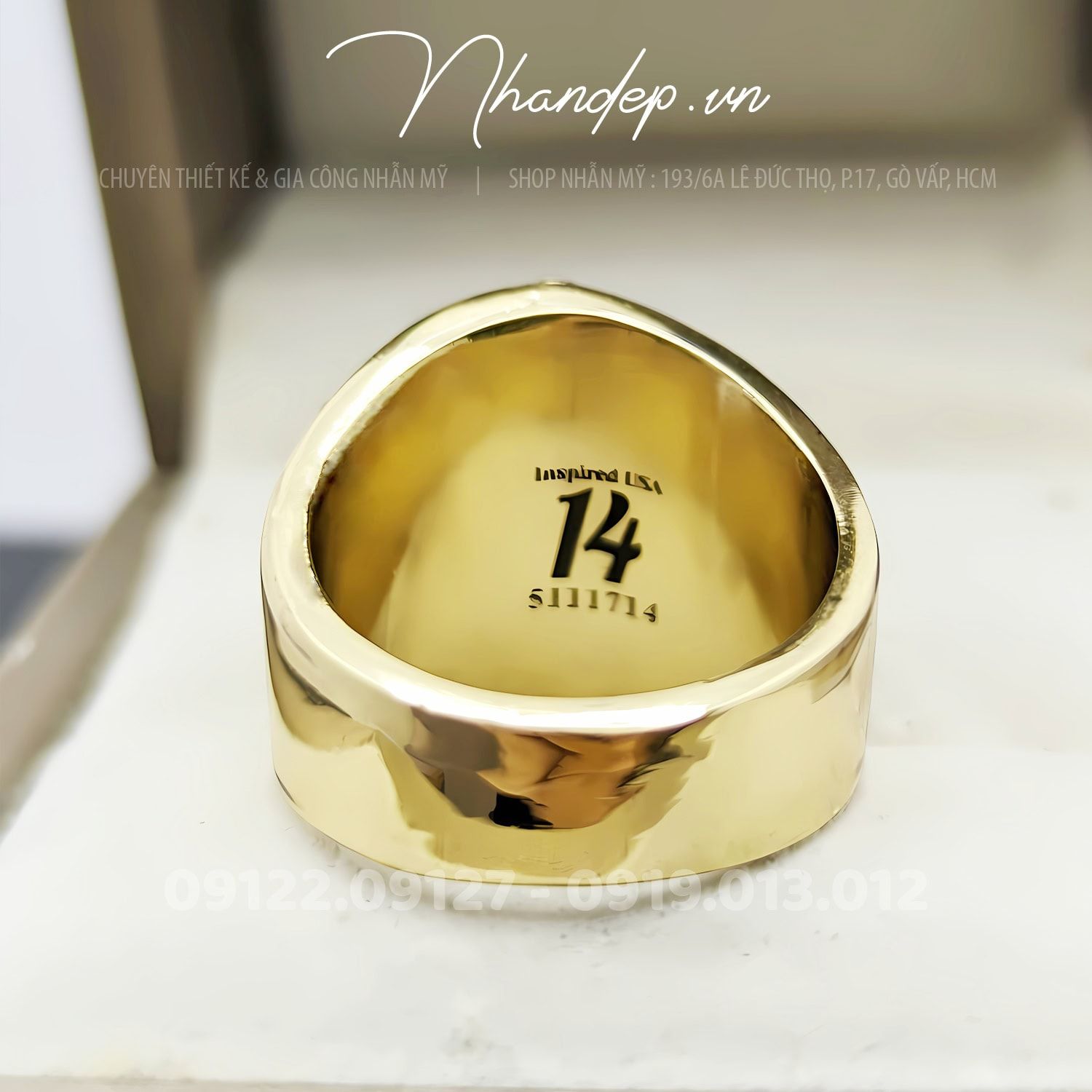 - Nhẫn có màu Vàng từ trong lõi ra ngoài, được đúc từ hợp kim độc quyền do shop tự phát triển. Không shop nào khác có. Phôi gốc Đồng thế hệ mới đã được shop tinh chỉnh để chuyên đúc nhẫn Mỹ. Đó là lý do nhẫn không bạc màu, sắc nét, nhìn như vàng thật, đúc được những mẫu nhẫn Mỹ cực khó.