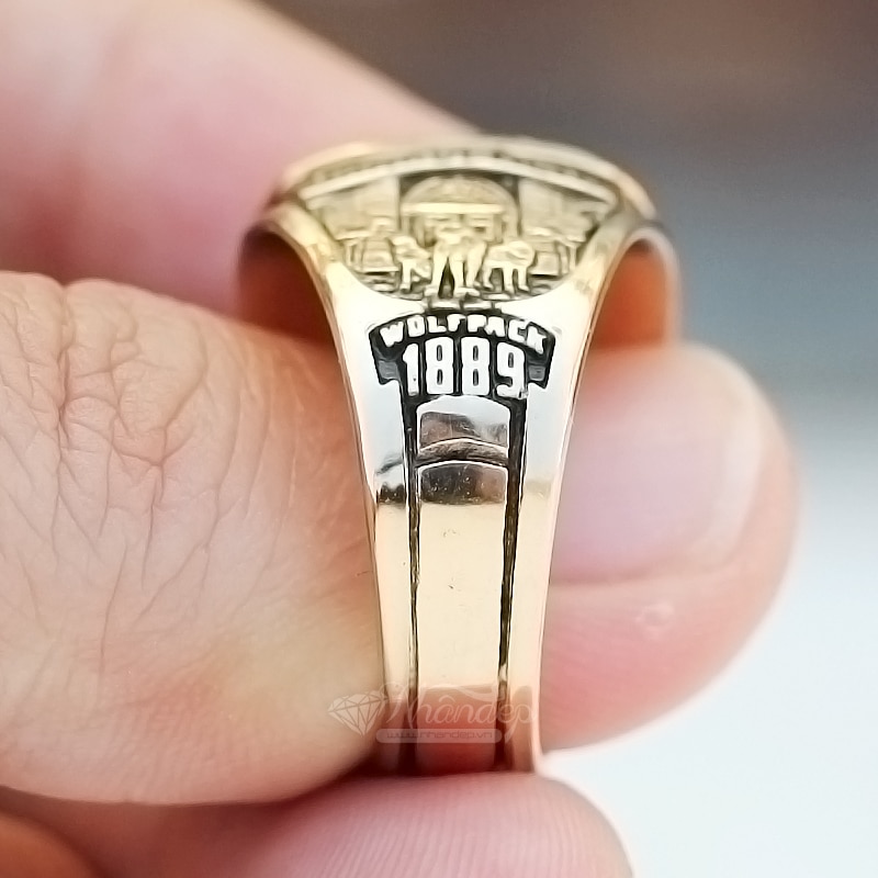 Nhẫn Mỹ North Carolina – Đồng hội vàng1.000.000XEM THÊM & ĐẶT HÀNGChữ NC trên mặt nhẫn viết tắt của "North Carolina" - là 1 ngôi trường rất lâu đời, được thành lập năm 1887, đến năm 1889 trường mở rộng và phát triển. Chữ S bao quanh là viết tắt của chữ State. Biểu tượng của ngôi trường này là bày Sói (wolfpack). Nhẫn thiết kế cho ngôi trường này có form rất đẹp. Hãng Aritk đã chế tác lại dựa trên khuôn gốc (nhẫn zin) tạo ra họa tiết sắc nét, chân thực, và đặc biệt là màu sắc sáng bóng tuyệt vời. Nhandep.vn phân phối chính hãng với giá rẻ nhất thị trường. Mỗi chiếc có 1 mã số riêng biệt để check, nếu bạn có nhu cầu, vui lòng liên hệ với shop để được giảm 30% trước khi nó quay về giá 1.000.0000đ