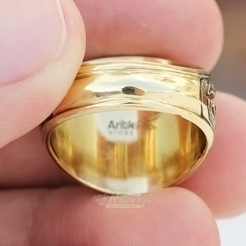 Nhẫn Mỹ đồng hội vàng do Aritk sản xuất có đóng mã số riêng từng chiếc ở trong lòng. Khi mua hàng, bạn có thể check thông tin từ nhà sản xuất bằng cách nhập Mã số này vào website www.aritk.com để biết thông tin bao gồm : Chất liệu, màu đá, size nhẫn, cân nặng... Và bạn hãy yên tâm rằng, hàng chính hãng sẽ được hỗ trợ Bảo hành miễn phí, hỗ trợ đổi mẫu khác không giới hạn.