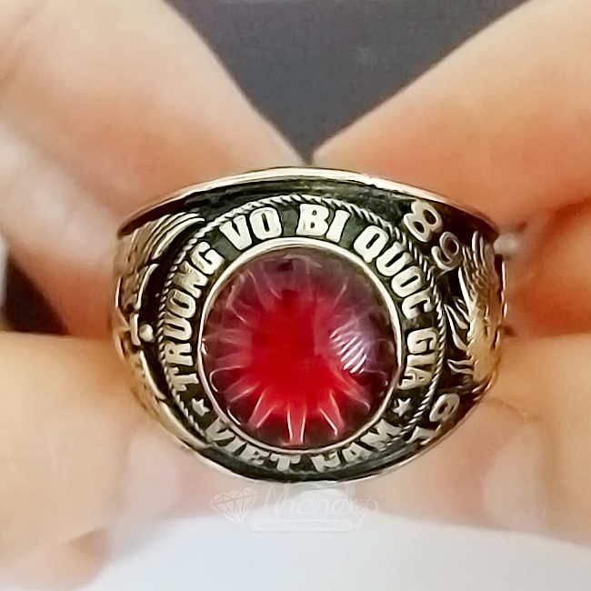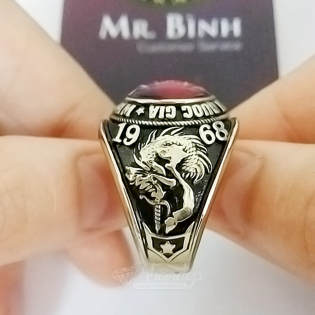 Nhẫn Mỹ Võ Bị Đà Lạt 1968 Đá Đỏ Tia – Đồng Hội Vàng1.000.000XEM THÊM & ĐẶT HÀNGVõ Bị Quốc Gia Đà Lạt là trường Cao Cấp Đào tạo Sĩ Quan Quân lực Việt Nam Cộng Hòa (chế độ cũ). Trường có giáo trình phổ thông song song với giáo trình Quân sự Hoa Kỳ (WestPoint - USMA). Hoạt động từ 1948 đến 1975 chấm dứt. Nhiều người hoài cổ vẫn còn yêu thích mẫu mã mà Học viện Mỹ sản xuất cho sĩ quan VNCH, nên hãng Aritk đã phục dựng lại bằng chất liệu đồng hội vàng thay thế cho vàng 18K, bằng công nghệ 3D Resin cao cấp và công nghệ Ceramic Hybrid Premium 8H giúp sản phẩm đạt được độ hoàn thiện đến mức RẤT TINH XẢO. Họa tiết của nhẫn thể hiện cho 3 binh chủng : Không quân - Hải quân - Lục quân. Ngoài ra, với chất liệu mới (đồng hội vàng) cho ra màu sắc vàng nhạt và chân thật đến mức thợ kim hoàn cầm trên tay cũng khó nhận biết là Vàng thật hay là đồng hội. Nhẫn có form vừa tay, họa tiết rất sắc nét, rỏ đến từng vân vảy rồng, form chuẩn nhẫn Mỹ, phù hợp với người hoài cổ, thích sưu tầm.