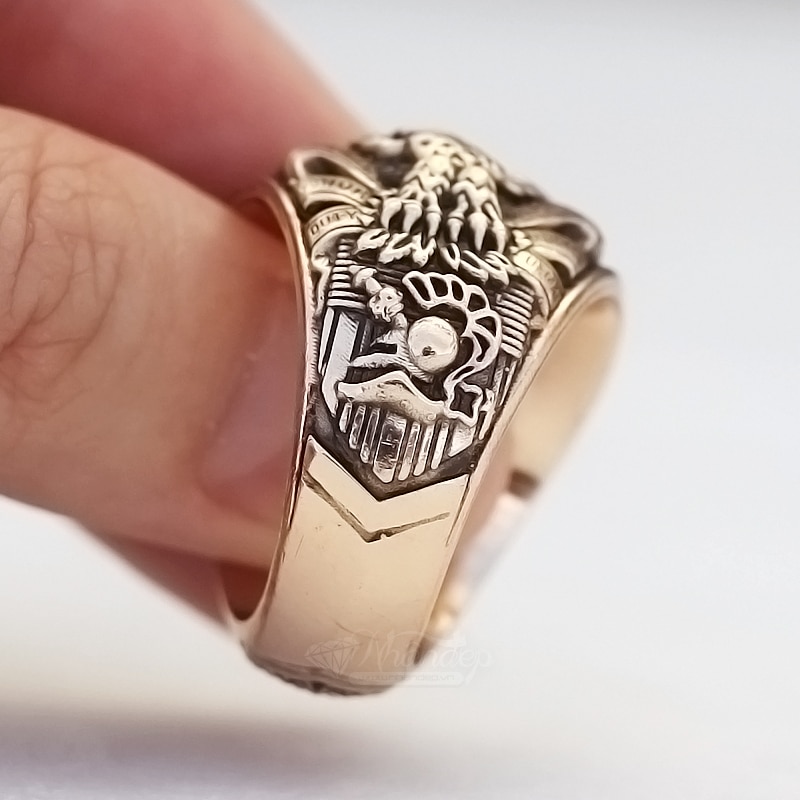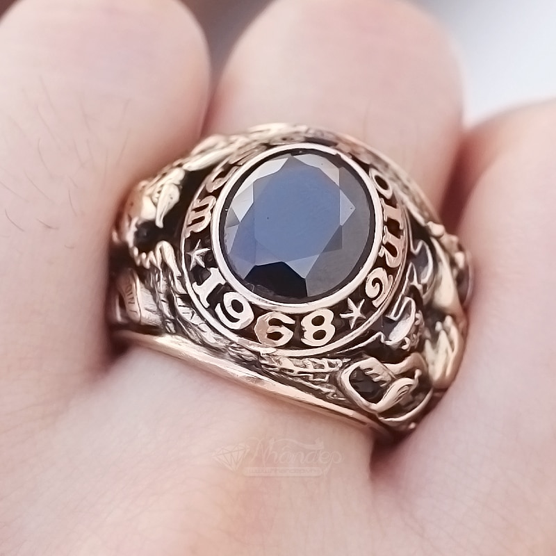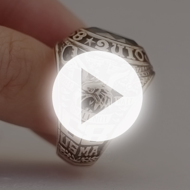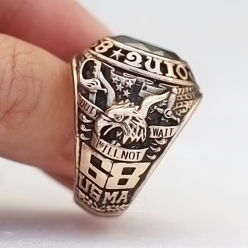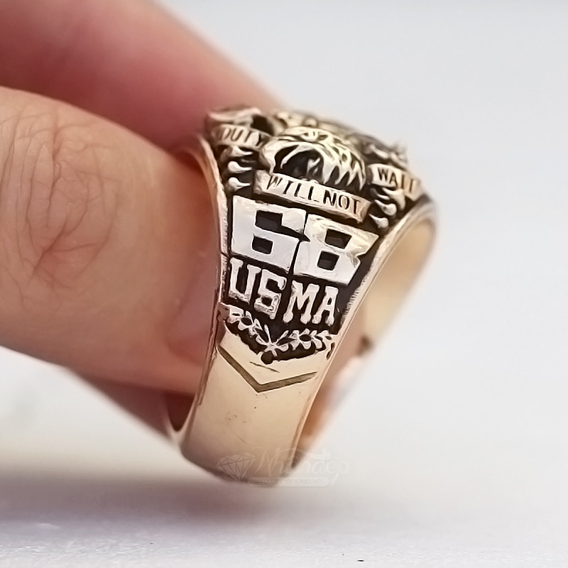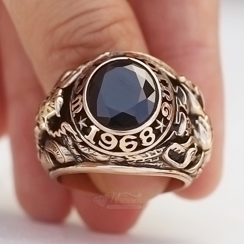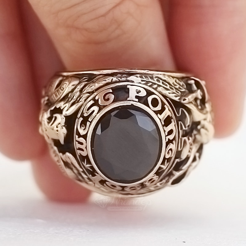 Nhẫn Mỹ West Point 68 Đá Màu Đen Vát Cạnh Đồng Hội Vàng