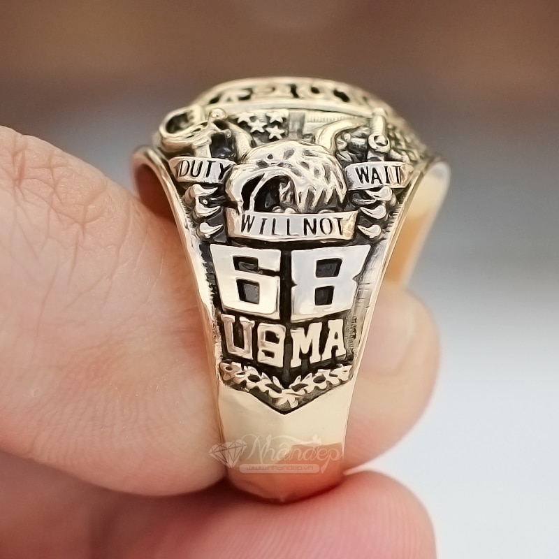 Nhẫn Mỹ West Point 68 Đỏ Tia – Đồng Hội Vàng1.200.000XEM THÊM & ĐẶT HÀNGHọc Viện West Point là ngôi trường danh giá và lâu đời nhất của nước Mỹ. Và chiếc nhẫn mang tên trường WestPoint cũng được xem là "Vua Nhẫn Mỹ". Bởi lẻ nó rất đẹp và hiếm. Lấy cảm hứng đó, hãng Aritk đã phục dựng lại bằng chất liệu đồng hội vàng thay thế cho vàng 10K, bằng công nghệ 3D Resin cao cấp và công nghệ Ceramic Hybrid Premium 8H giúp sản phẩm đạt được độ hoàn thiện đến mức RẤT TINH XẢO. Ngoài ra, chất liệu mới (đồng hội vàng) cho ra màu sắc vàng nhạt rất chân thật. Nhẫn có form khá to và rất dầy dặn (hầm hố), phù hợp với người có bàn tay to, thích bản bự. Họa tiết nhẫn sắc nét, tinh tế.