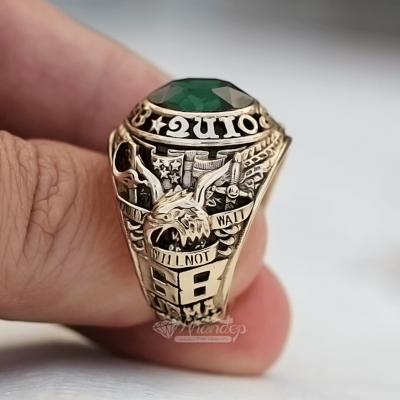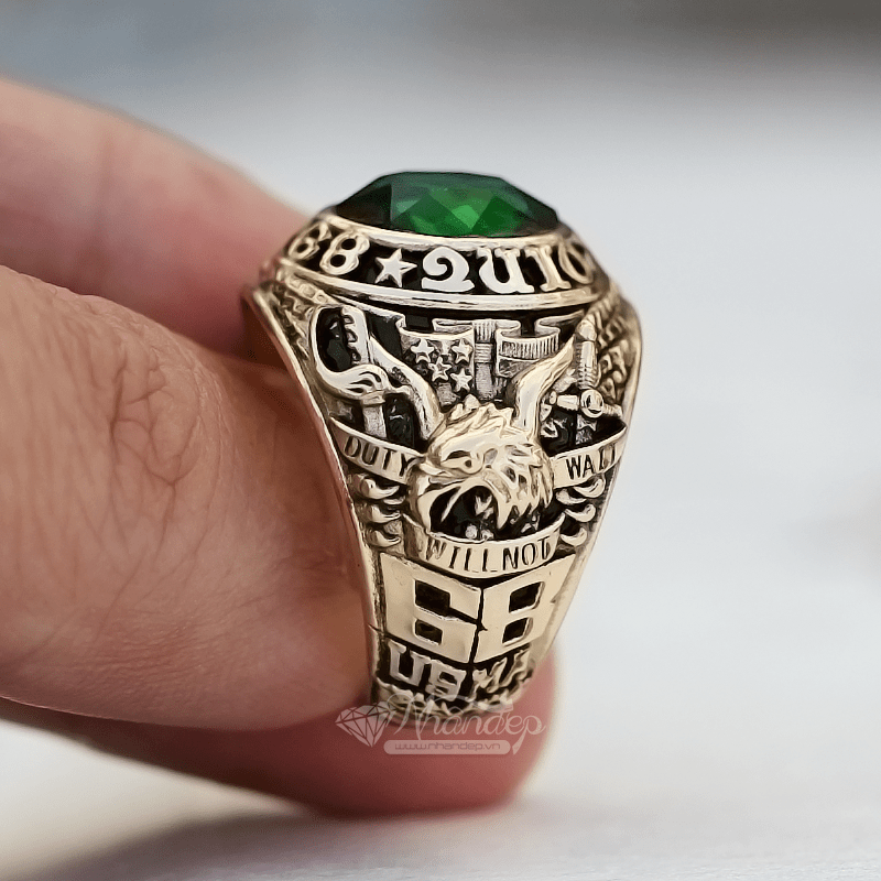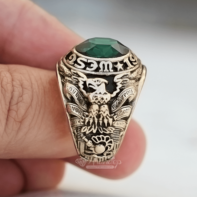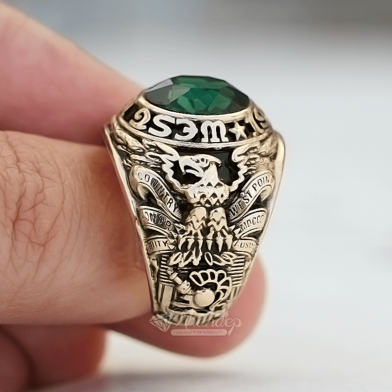 Nhẫn Mỹ West Point 68 Xanh Lá Vát – Đồng Hội Vàng1.100.000XEM THÊM & ĐẶT HÀNGHọc Viện West Point là ngôi trường danh giá và lâu đời nhất của nước Mỹ. Và chiếc nhẫn mang tên trường WestPoint cũng được xem là "Vua Nhẫn Mỹ". Bởi lẻ nó rất đẹp và hiếm. Lấy cảm hứng đó, hãng Aritk đã phục dựng lại bằng chất liệu đồng hội vàng thay thế cho vàng 10K, bằng công nghệ 3D Resin cao cấp và công nghệ Ceramic Hybrid Premium 8H giúp sản phẩm đạt được độ hoàn thiện đến mức RẤT TINH XẢO. Ngoài ra, chất liệu mới (đồng hội vàng) cho ra màu sắc vàng nhạt rất chân thật. Nhẫn có form khá to và rất dầy dặn (hầm hố), phù hợp với người có bàn tay to, thích bản bự. Họa tiết nhẫn sắc nét, tinh tế.