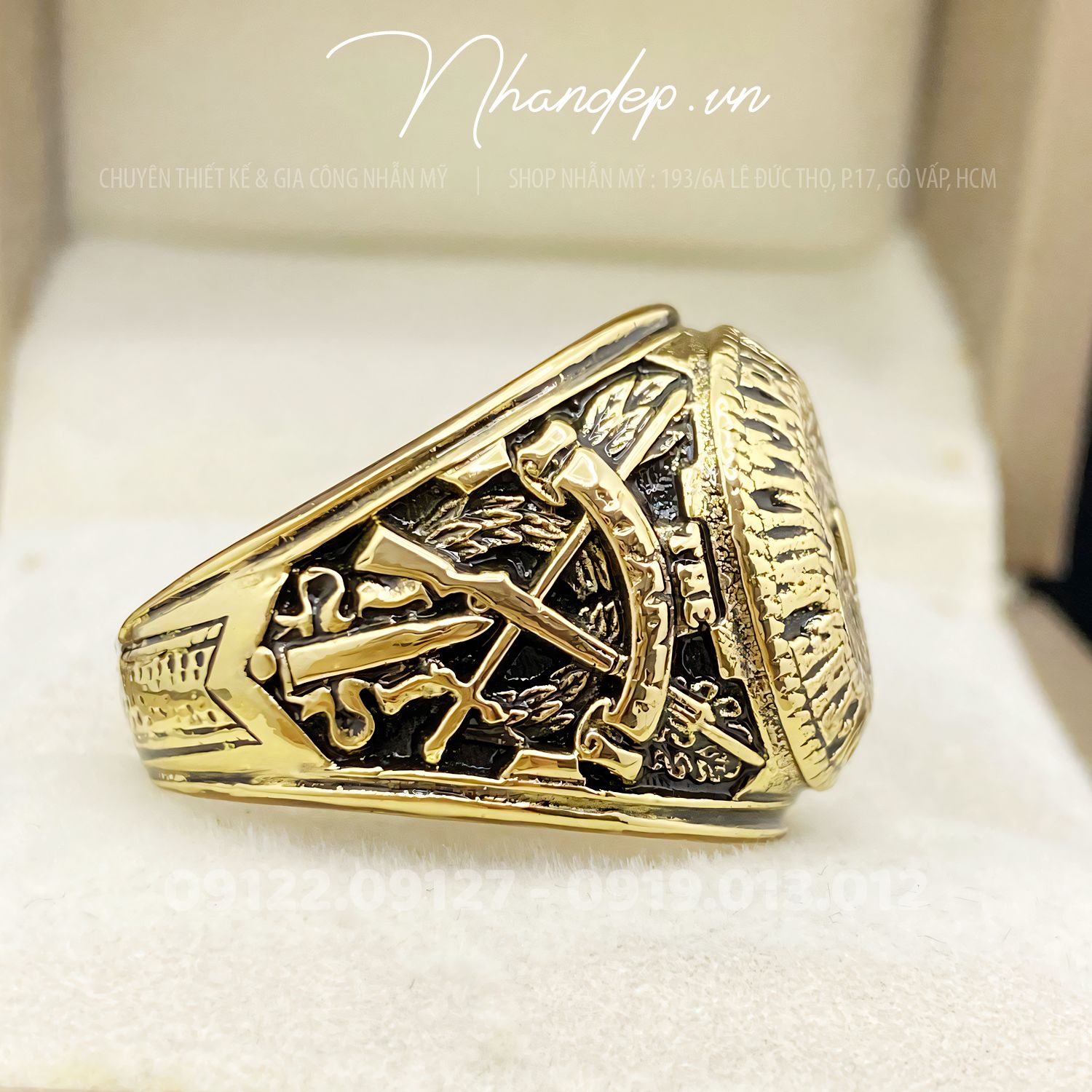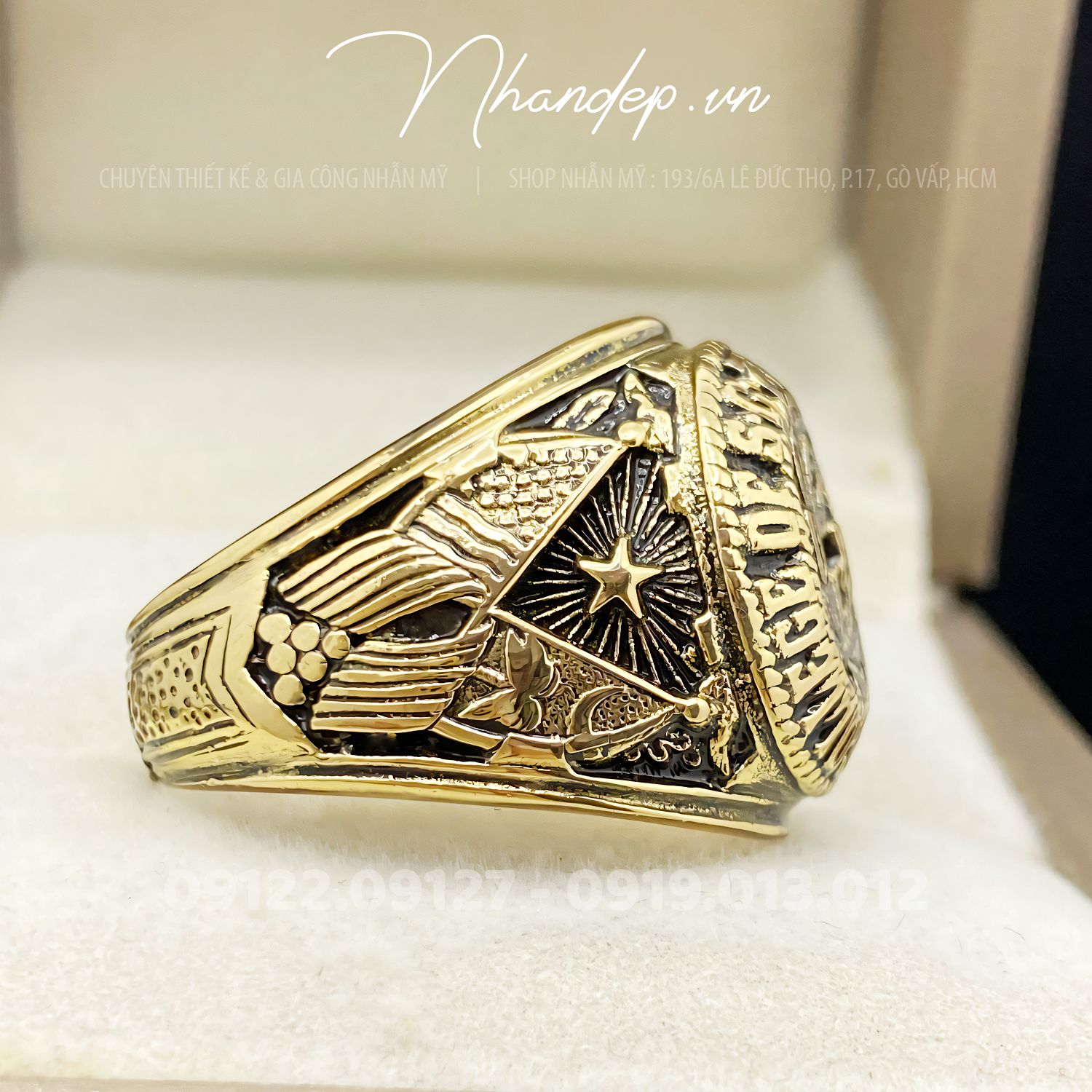 - Nhẫn được đúc từ hợp kim màu vàng độc quyền do shop tự phát triển. Không shop nào khác có, chuyên dùng để đúc nhẫn Mỹ. Cam kết nhẫn không bạc màu, sắc nét, nhìn như vàng thật, đúc được những mẫu nhẫn Mỹ cực khó.