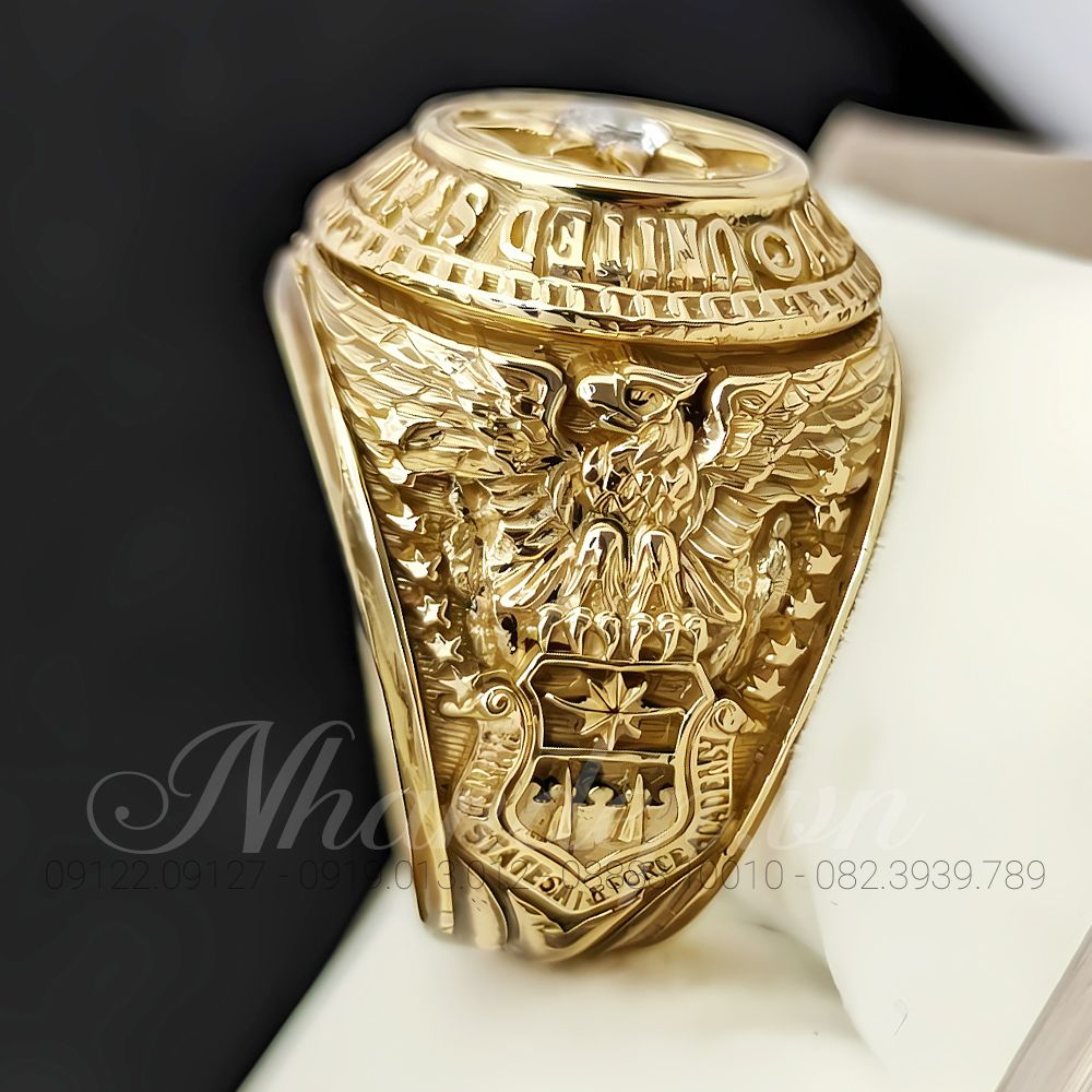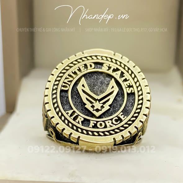 Nhẫn Không Quân Mỹ, Không Mặt Đá, Form Đơn Giản, Điêu Khắc Logo Air Force