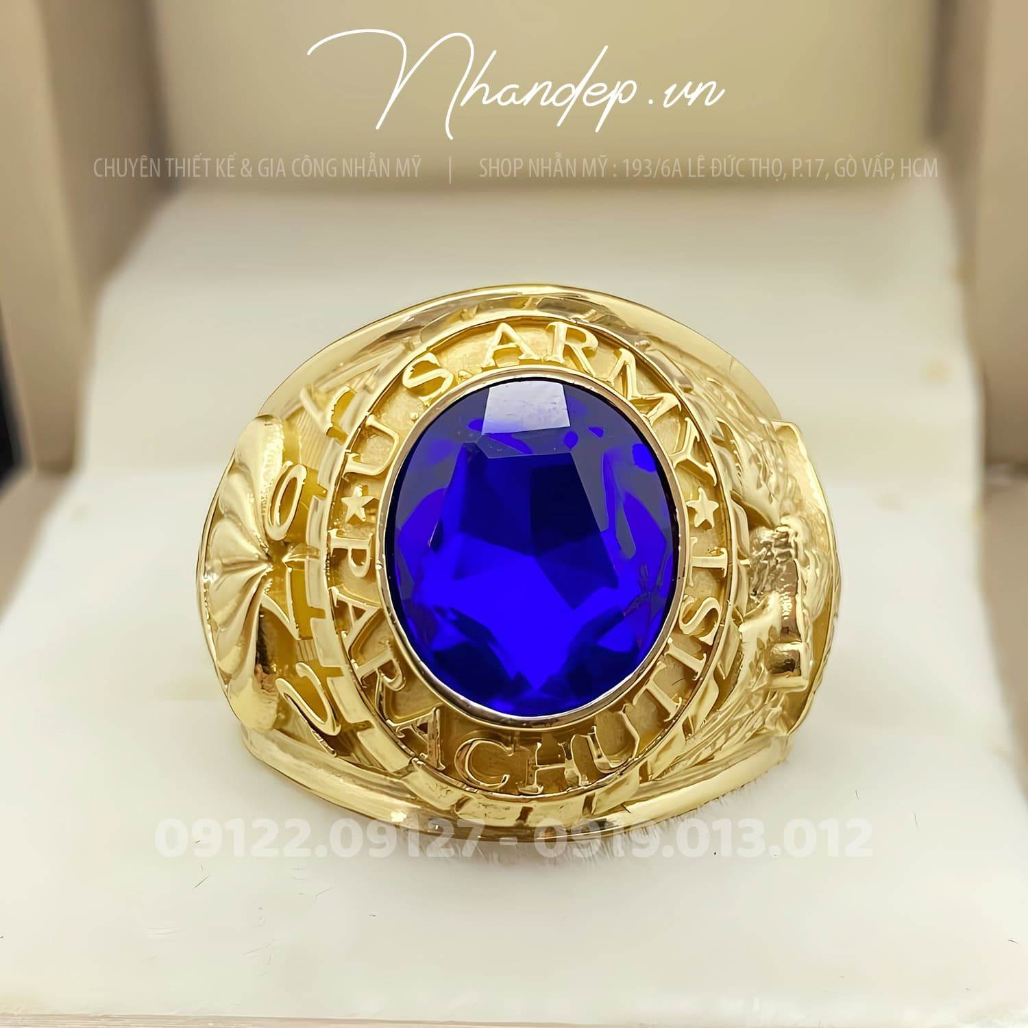 Nhẫn 1972 Biệt Kích Dù, Đá Xanh Dương Vát Cực Đẹp, Không Phủ Đen