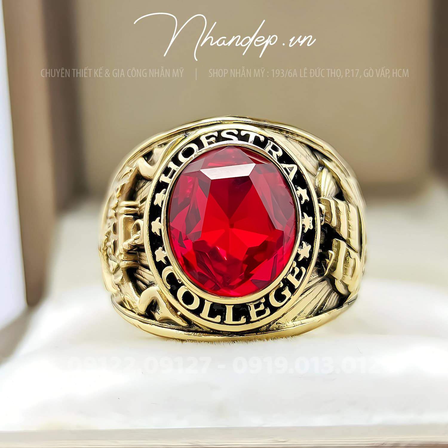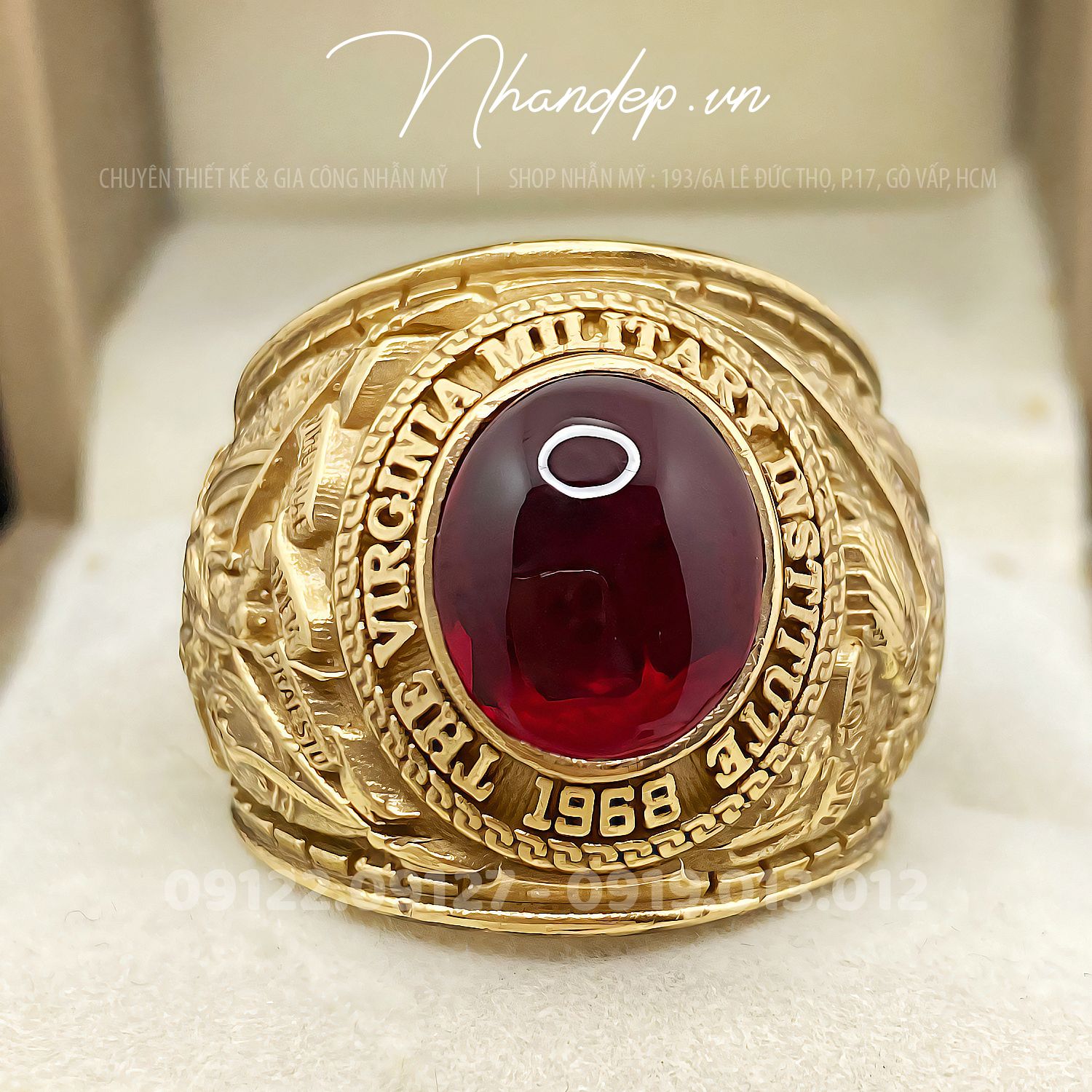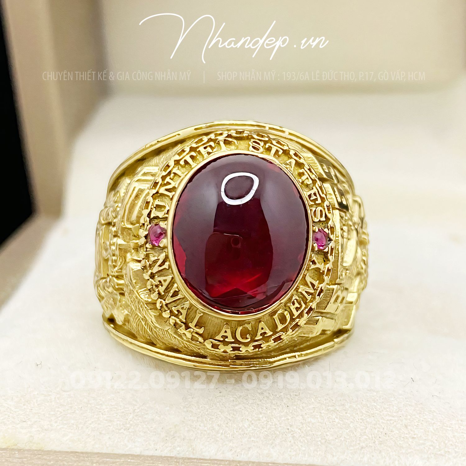Nhẫn 1969 Naval (Học Viện Hải Quân Mỹ), Đá Đỏ Trơn Form Xưa, Cổ Điển, Không Phủ Đen