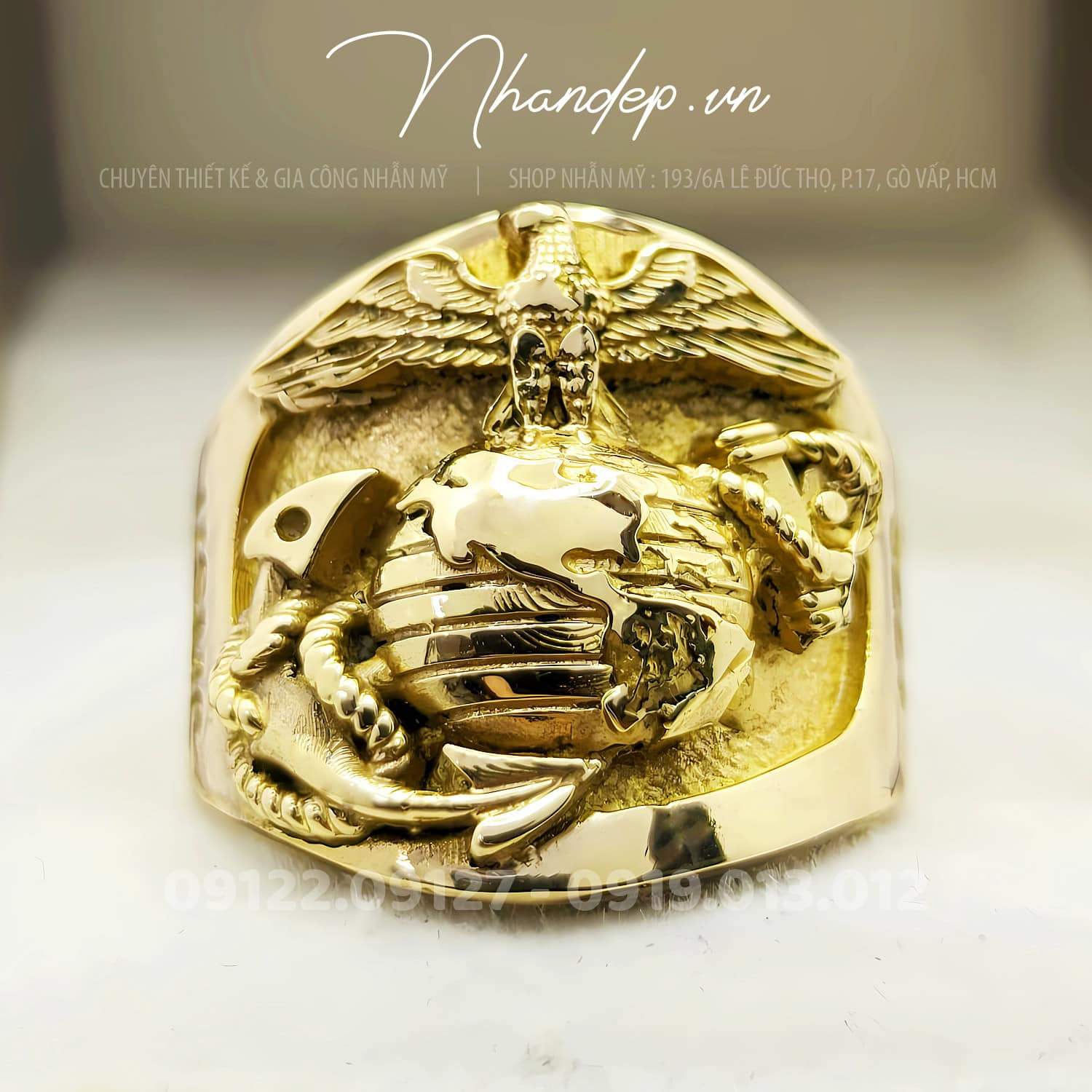 Nhẫn Mỹ Logo Thủy Quân Lục Chiến Mỹ, Không Mặt Đá, Form Nhẫn Mỹ Xưa