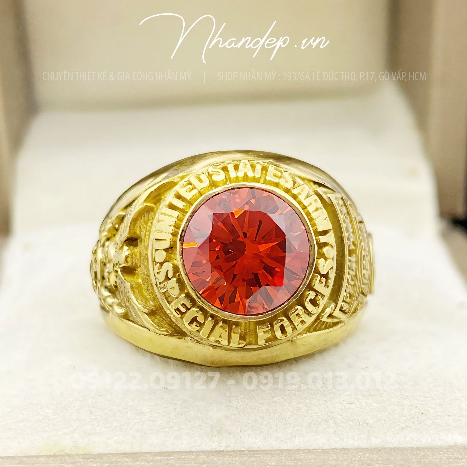 Nhẫn 1972 Biệt Kích Dù, Đá Đỏ Vát Cực Đẹp, Không Phủ Đen