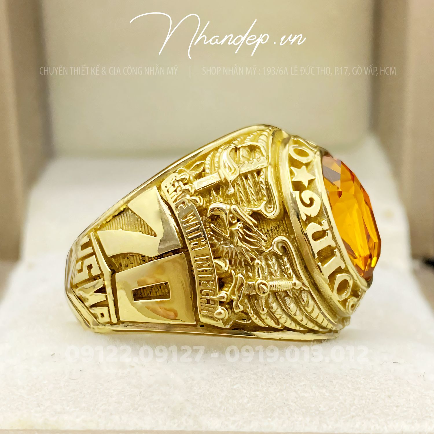Nhẫn 1970 West Point (Học Viện Quân Sự Mỹ) Đá Vàng Hổ Phách, Không Phủ Đen