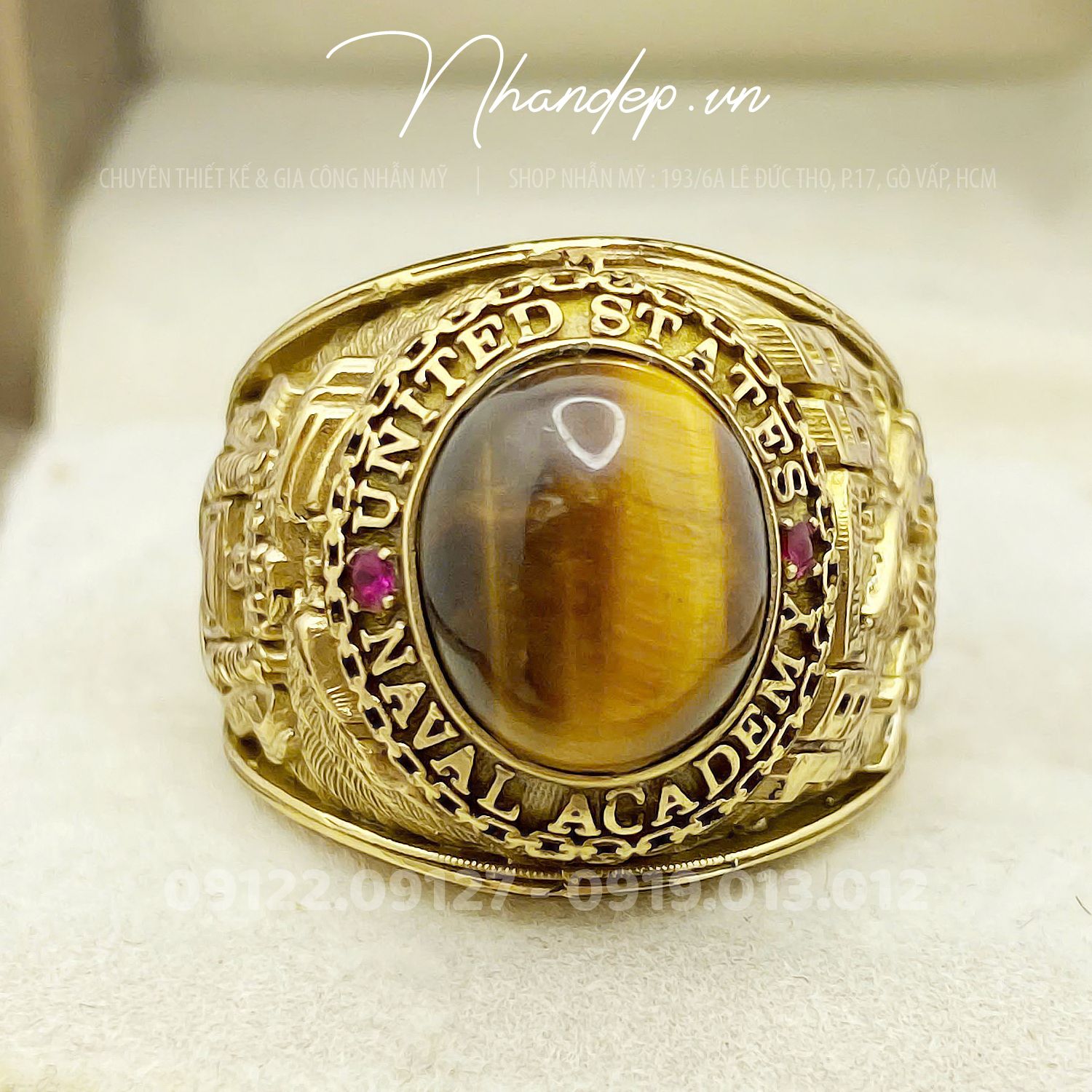 Nhẫn 1969 Naval (Học Viện Hải Quân Mỹ) Đá Mắt Hổ Sang Trọng, Không Phủ Đen