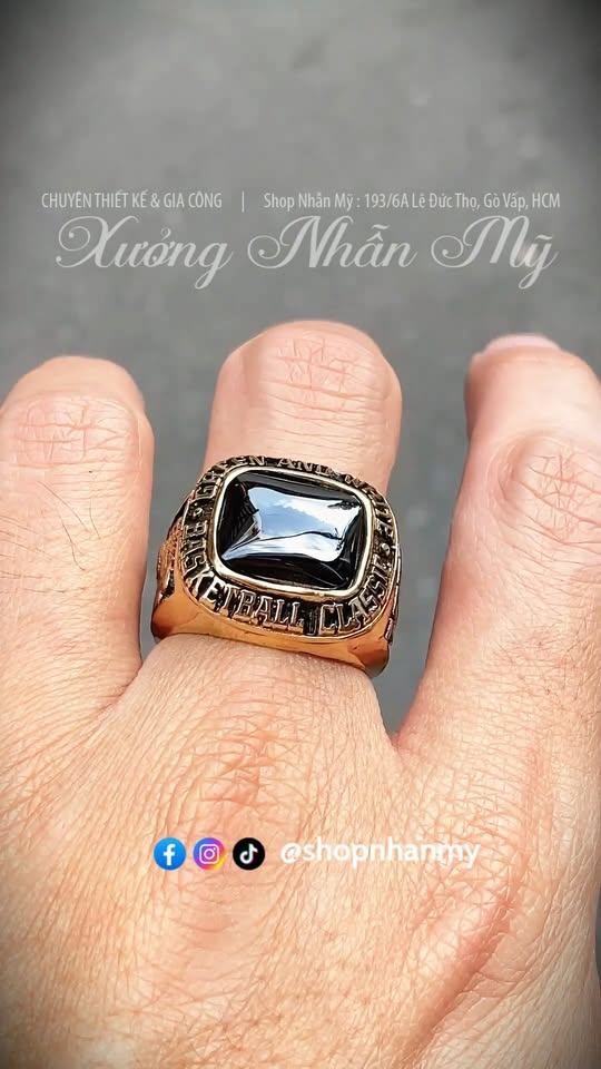 Nhẫn 1975, Đá Vuông Đen Trơn, Form Vuông Mạnh Mẽ, Nam Tính