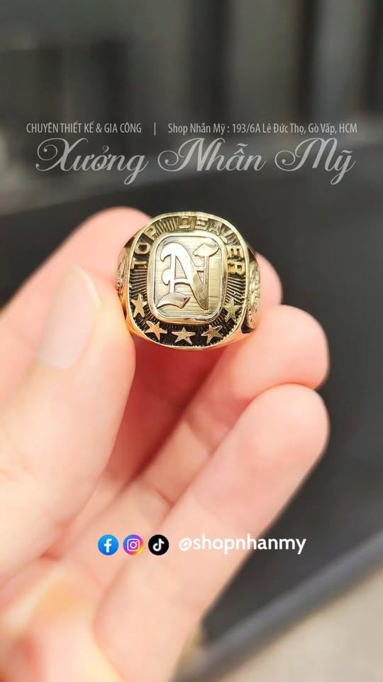 Mẫu Nhẫn Custom Theo Yêu Cầu: Mẫu Top Dealer, Mặt Nhẫn chữ N, Form Vuông, Mỏng nhẹ
