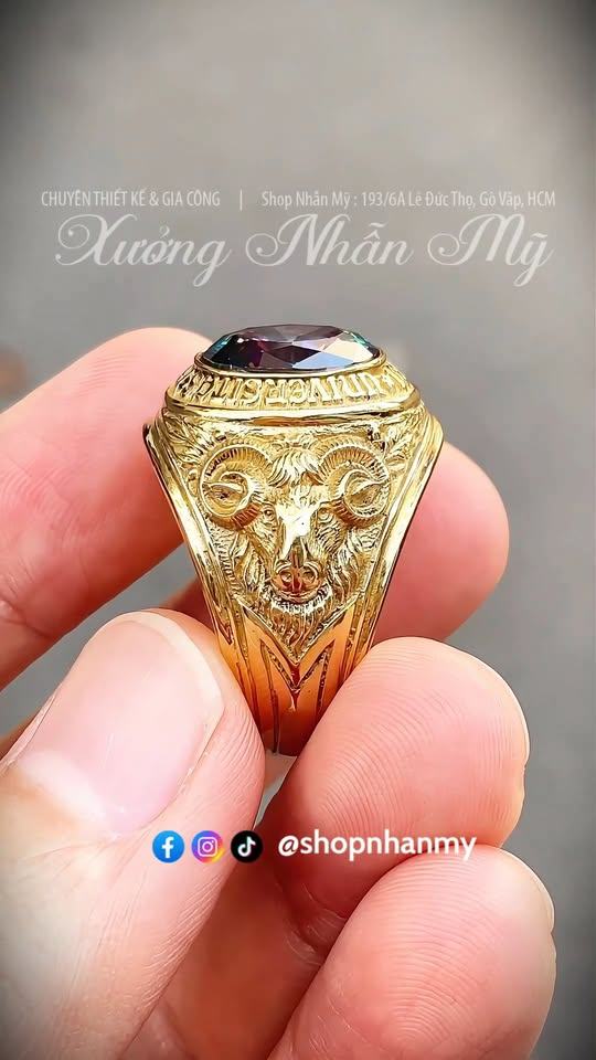 Nhẫn 1961 Hình Con Dê, Đá 7 Màu Cực Đẹp, Không Phủ Đen, Form Xưa