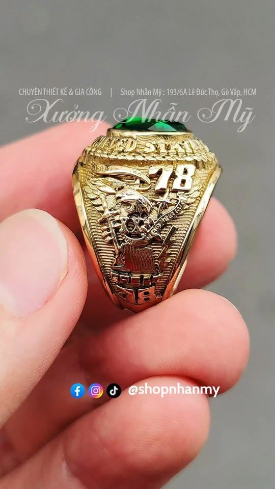 Nhẫn Không Quân 1978 Đá Xanh Lá Cực Đẹp Không Phủ Đen