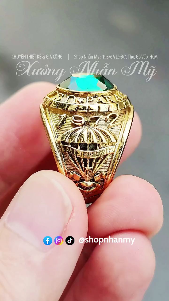 Nhẫn 1972 Biệt Kích Dù, Đá Xanh Lá Vát Cực Đẹp, Không Phủ Đen