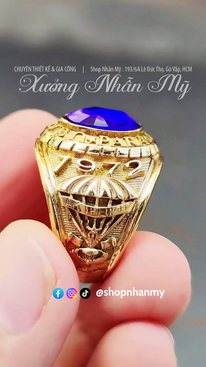 Nhẫn 1972 Biệt Kích Dù, Đá Xanh Dương Vát Cực Đẹp, Không Phủ Đen