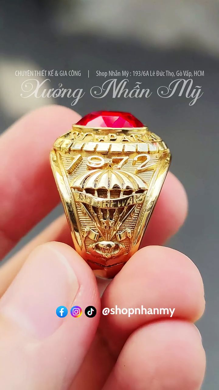 Nhẫn 1972 Biệt Kích Dù, Đá Đỏ Vát Cực Đẹp, Không Phủ Đen