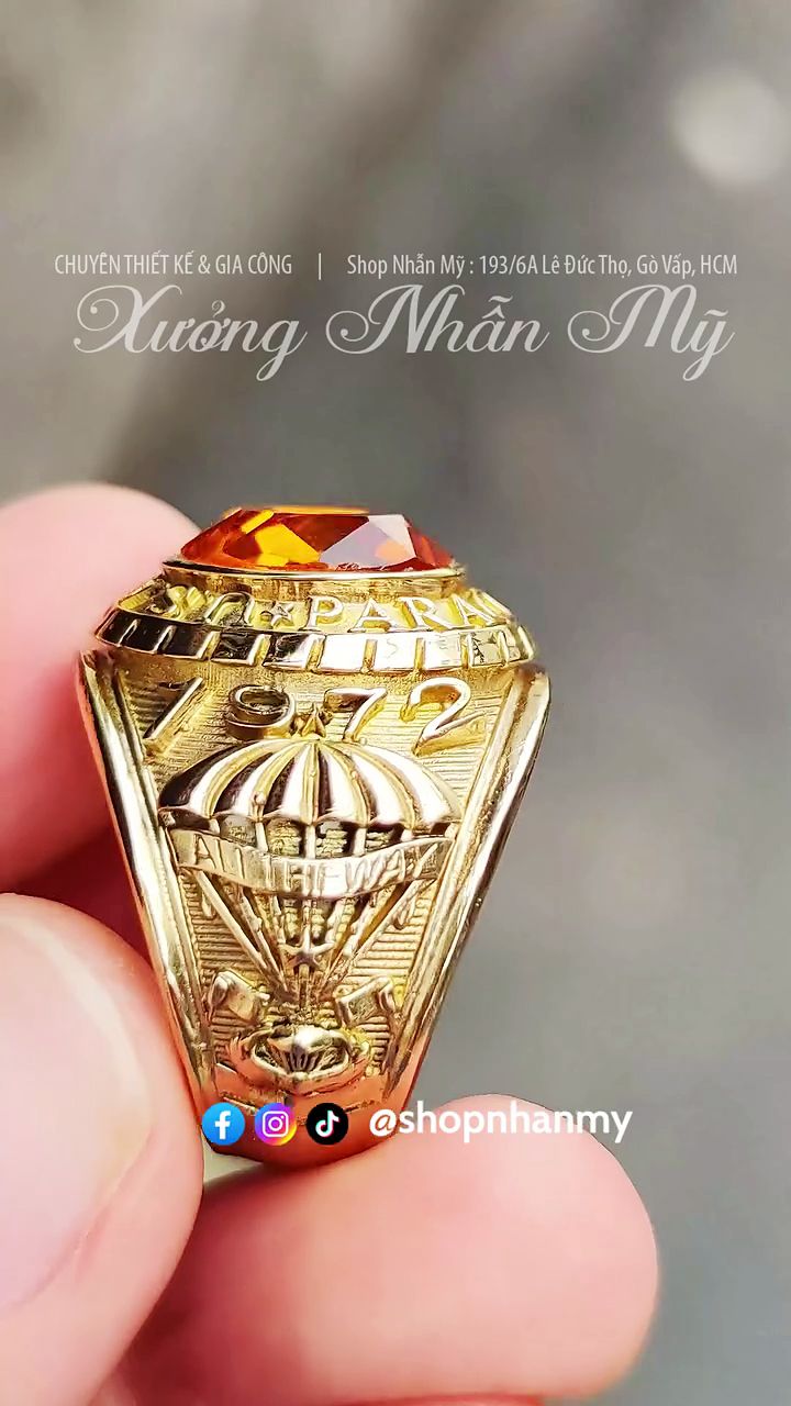 Nhẫn 1972 Biệt Kích Dù, Đá Vàng Vát Cực Đẹp, Không Phủ Đen