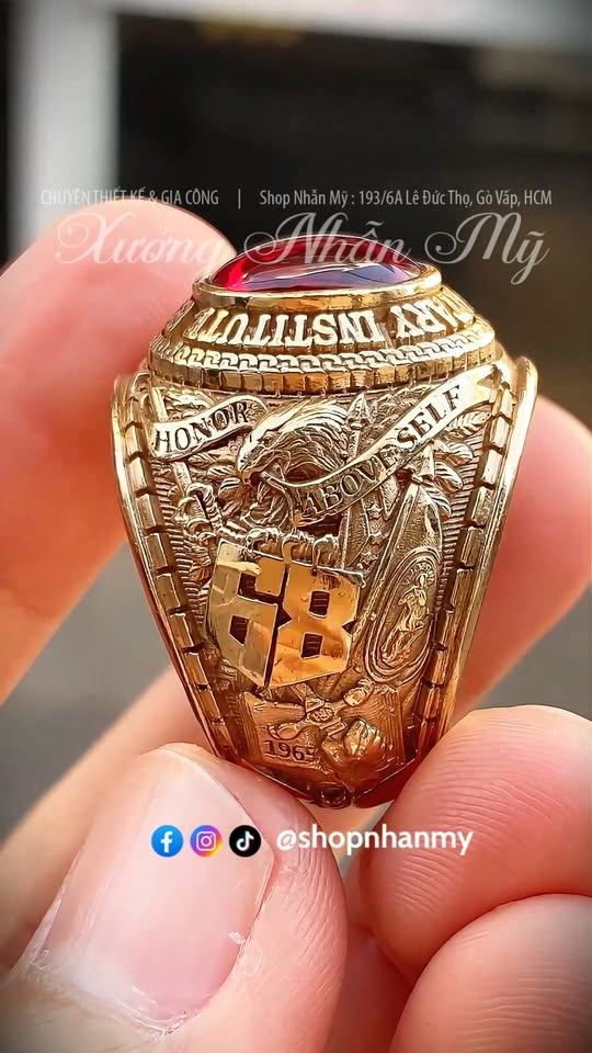 Nhẫn VMI 1968 màu vàng hồng, Form To Hầm Hố, Không Phủ Đen, Cực Kì Sắc Nét