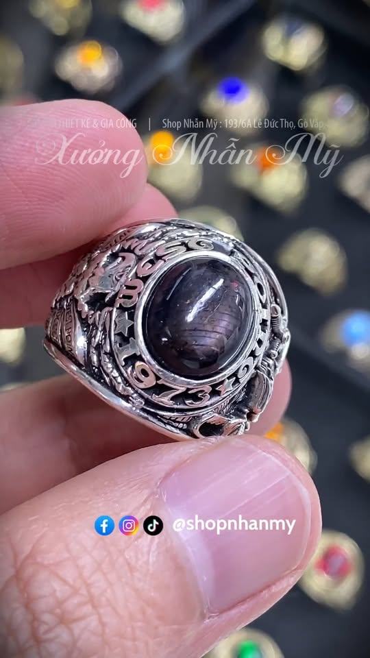 Nhẫn Hợp Kim Paladi 1968 Form Siêu To Khủng Đá Saphia Sao Cực Sang Trọng, Không Phủ Đen