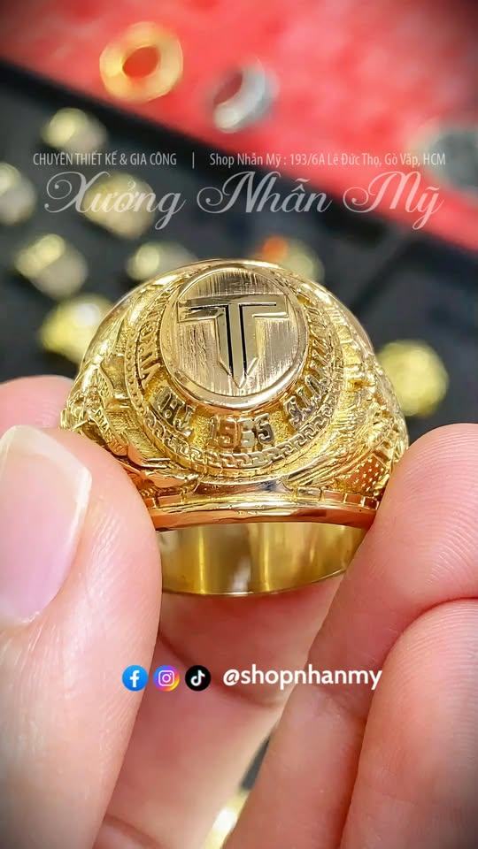 Nhẫn Custom Theo Yêu Cầu: Mặt Khắc Chữ T Cách Điệu, Form To Nặng, Không Phủ Đen