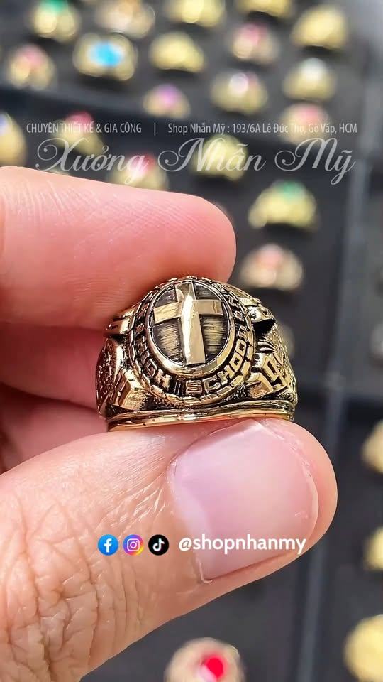 Nhẫn 1981 Không Đá Form Nhỏ Gọn Mini Chủ Đề Công Giáo, Khảm Mực Đen Cổ Điển