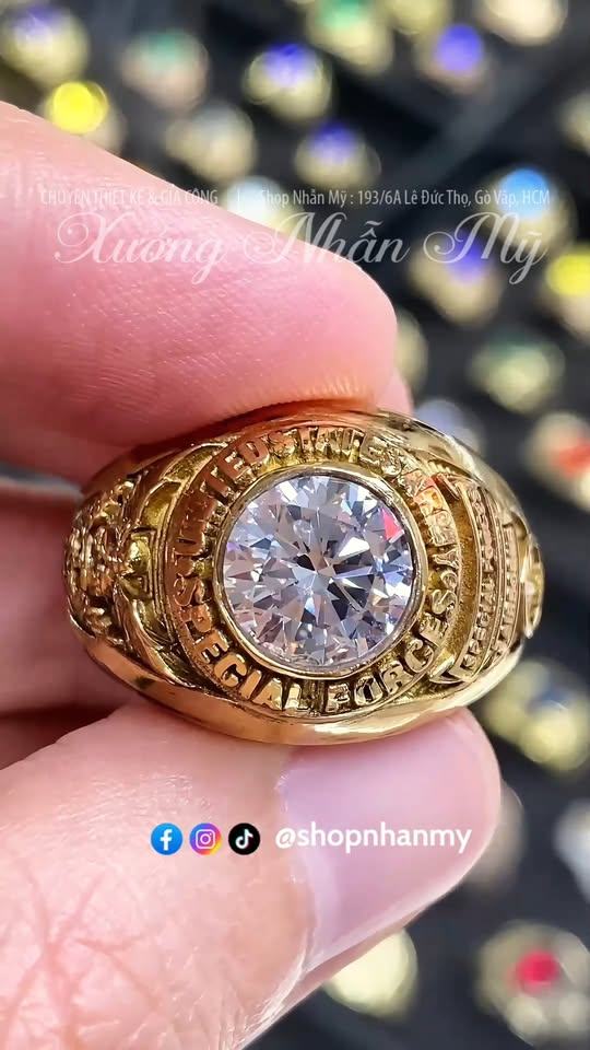 Nhẫn Lực Lượng Đặc Biệt Special Forces Đính Đá Tròn Trắng Cắt Vát Cực Đẹp, Tinh Tế