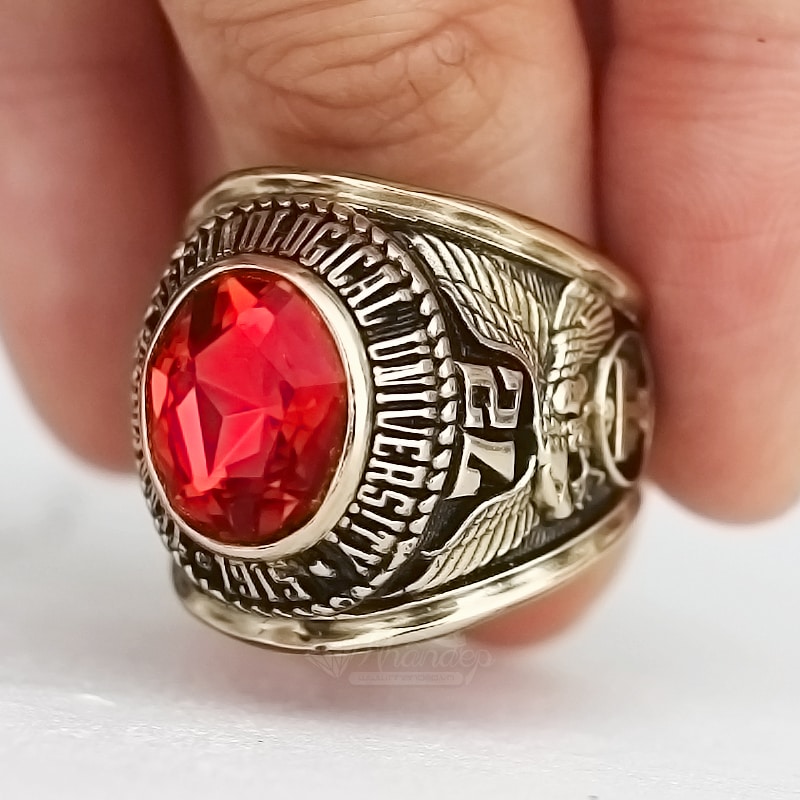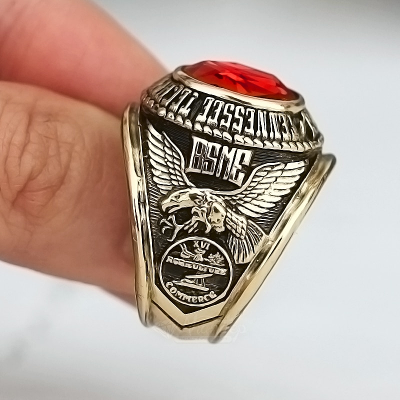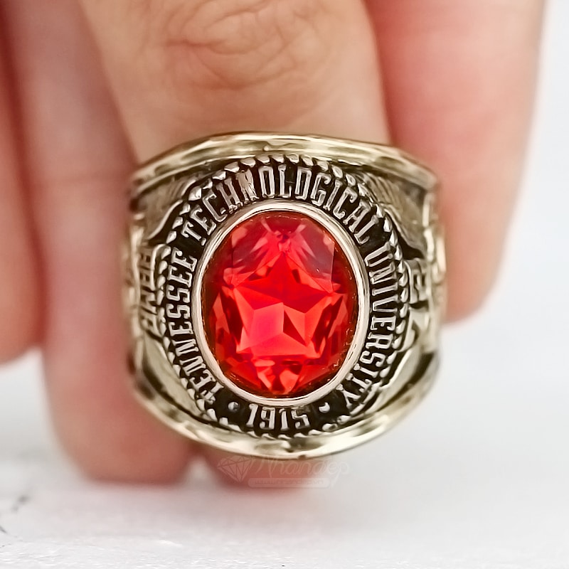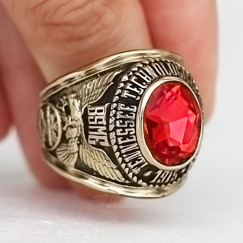 Nhẫn Mỹ Tennessee 72 Đá Đỏ Vát Cạnh – Đồng Hội Vàng